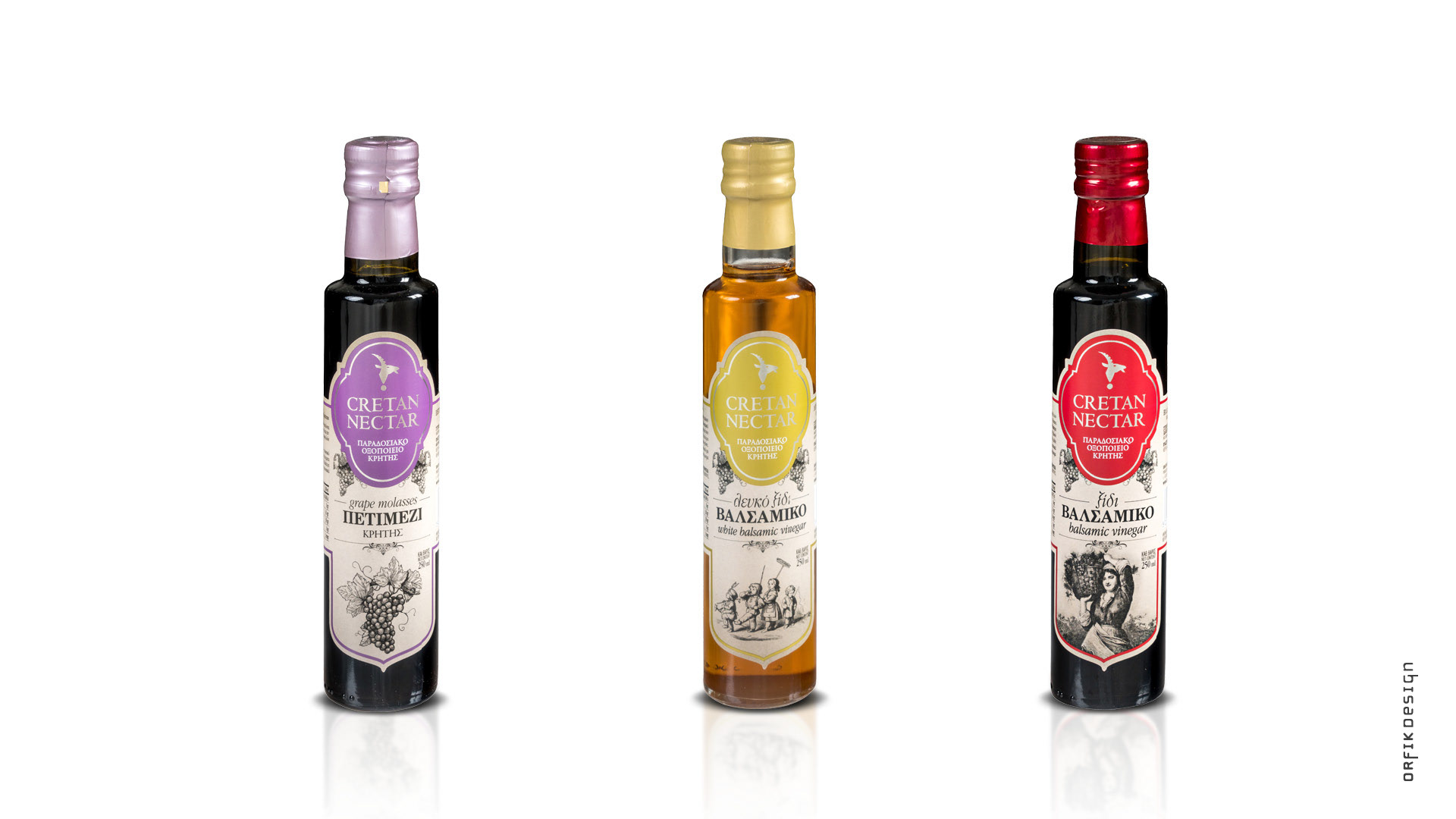 Cretan Nectar requested for a new logo, visual identity and label redesign to be applied to their bottles & packaging.