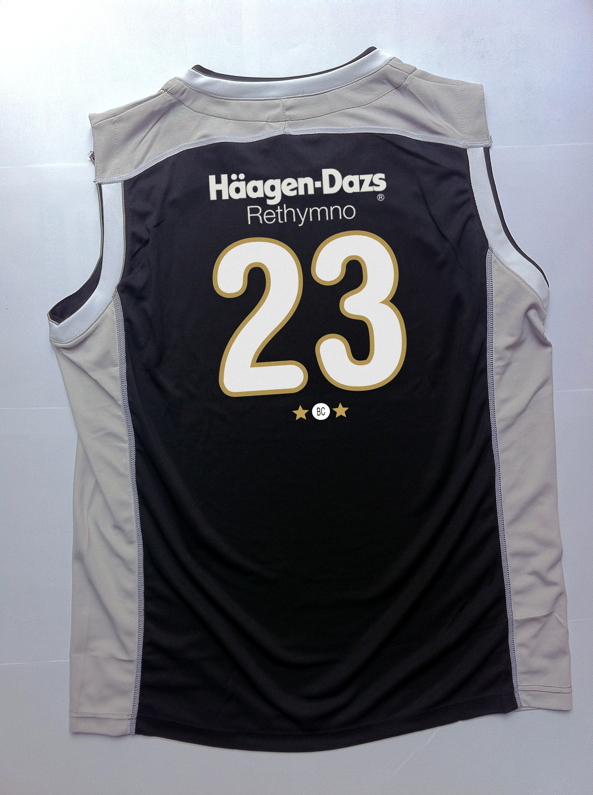 The Häagen Dazs cafe in Rethymno, Greece is setting up a basketball team every year to participate on local tournaments such as Kouroumpelo and other amateur level tournaments but very PRO looking and organized ones. This year the team is getting more serious and required a real and unique identity for their Basketball team as well as their Beach Volleyball team, all under the name of the world's popular brand of Häagen Dazs. A logo was created that combined a basketball on a ice cream's cone. The logo was applied on the team's merchandise and clothing.