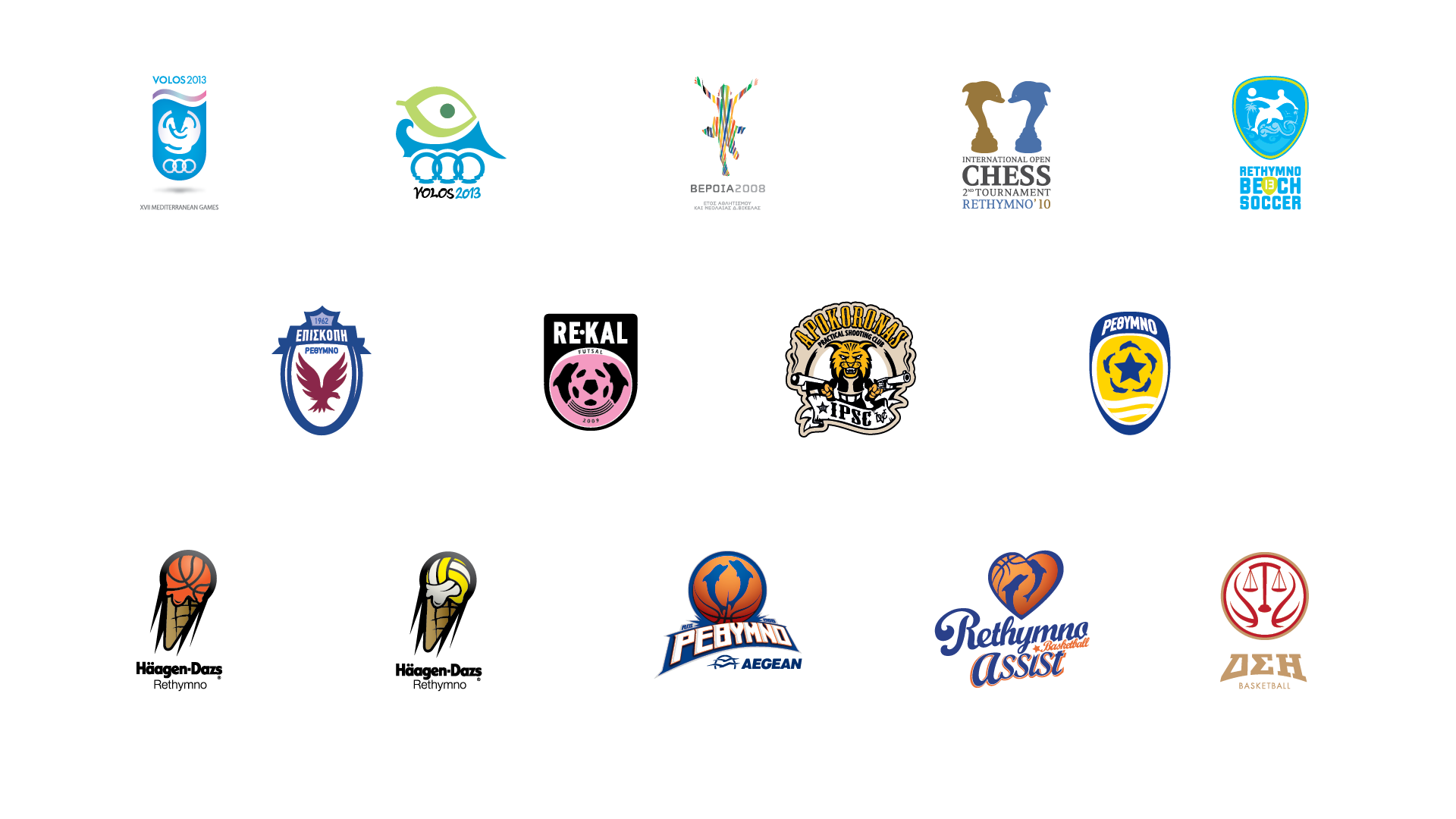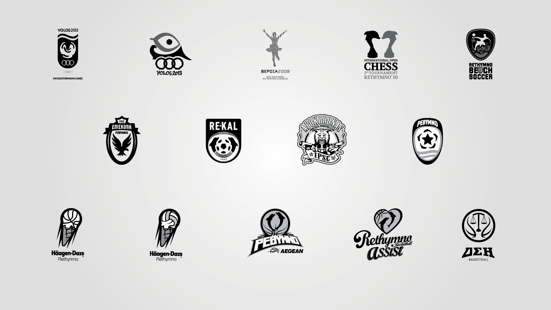 A logo collection by Orfik Design presenting sports logos for basketball, volleyball and football teams. International tournaments for chess and athletic games, practical shooting clubs and philanthropic programs.