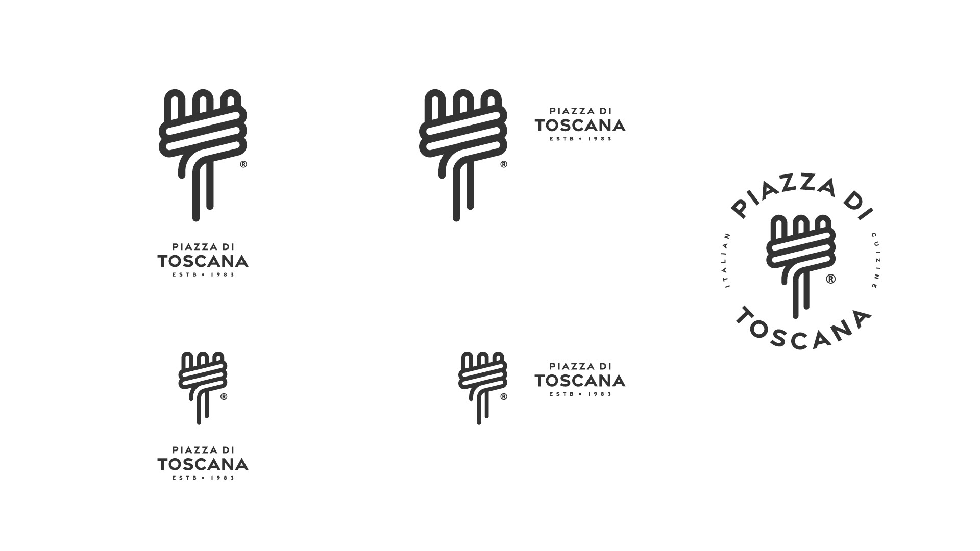 Toscana has always been an Italian cuisine restaurant mostly popular for its pasta, pizza gourmet recipes and Mexican food. A new logo, look and feel were created for this historic brand’s new image. The logo itself depicts a fork with spaghetti rolled around it.